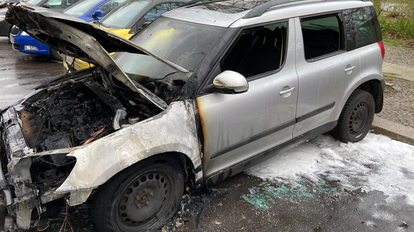 Brandanschlag auf das Auto von Dr. Nicolaus Fest, AfD-Landesvorsitzender Berlin und Mitglied des EU-Parlaments, 10.3.2020, FotoAfD