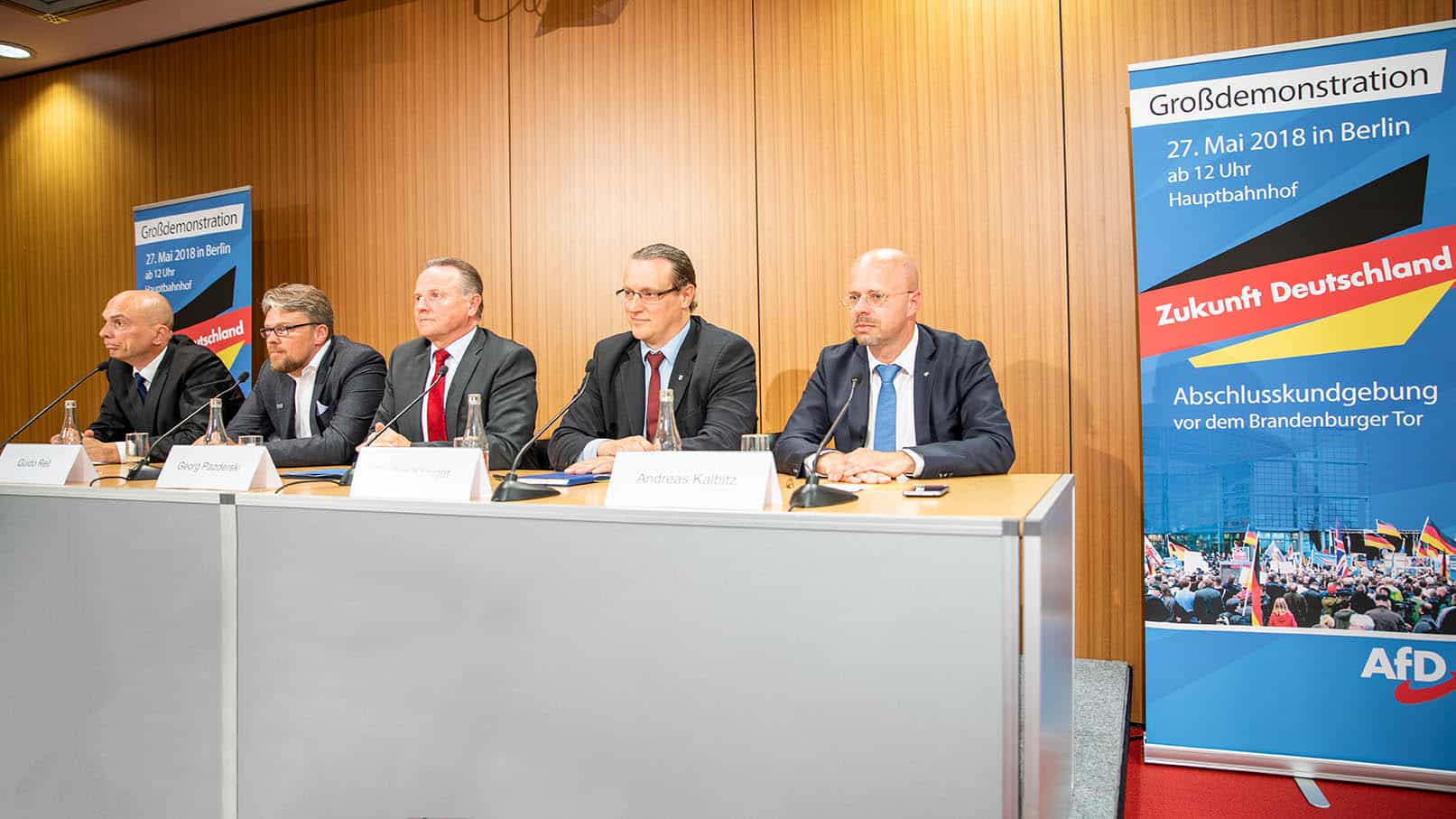 PK_Demo AfD-Pressekonferenz zur Großdemo, v.r.n.l.: die AfD-Bundesvorstandsmitglieder Andreas Kalbitz, Steffen Königer, Georg Pazderski und Guido Reil, FotoAfD